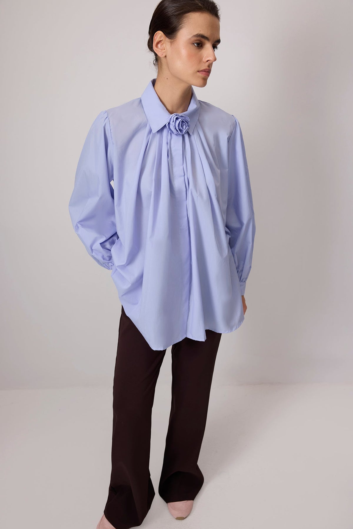%100 PAMUKLU GÜL DETAYLI GÖMLEK