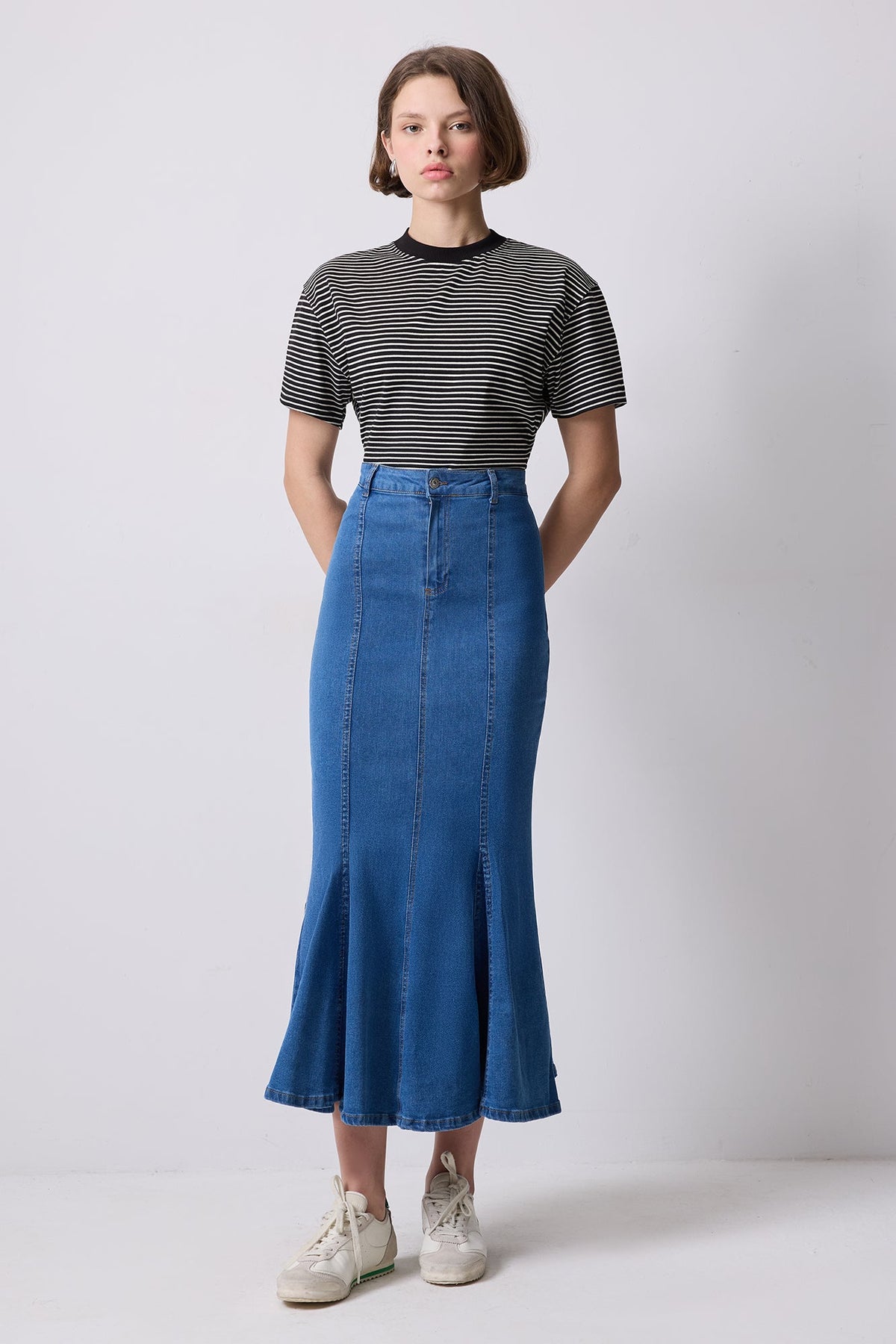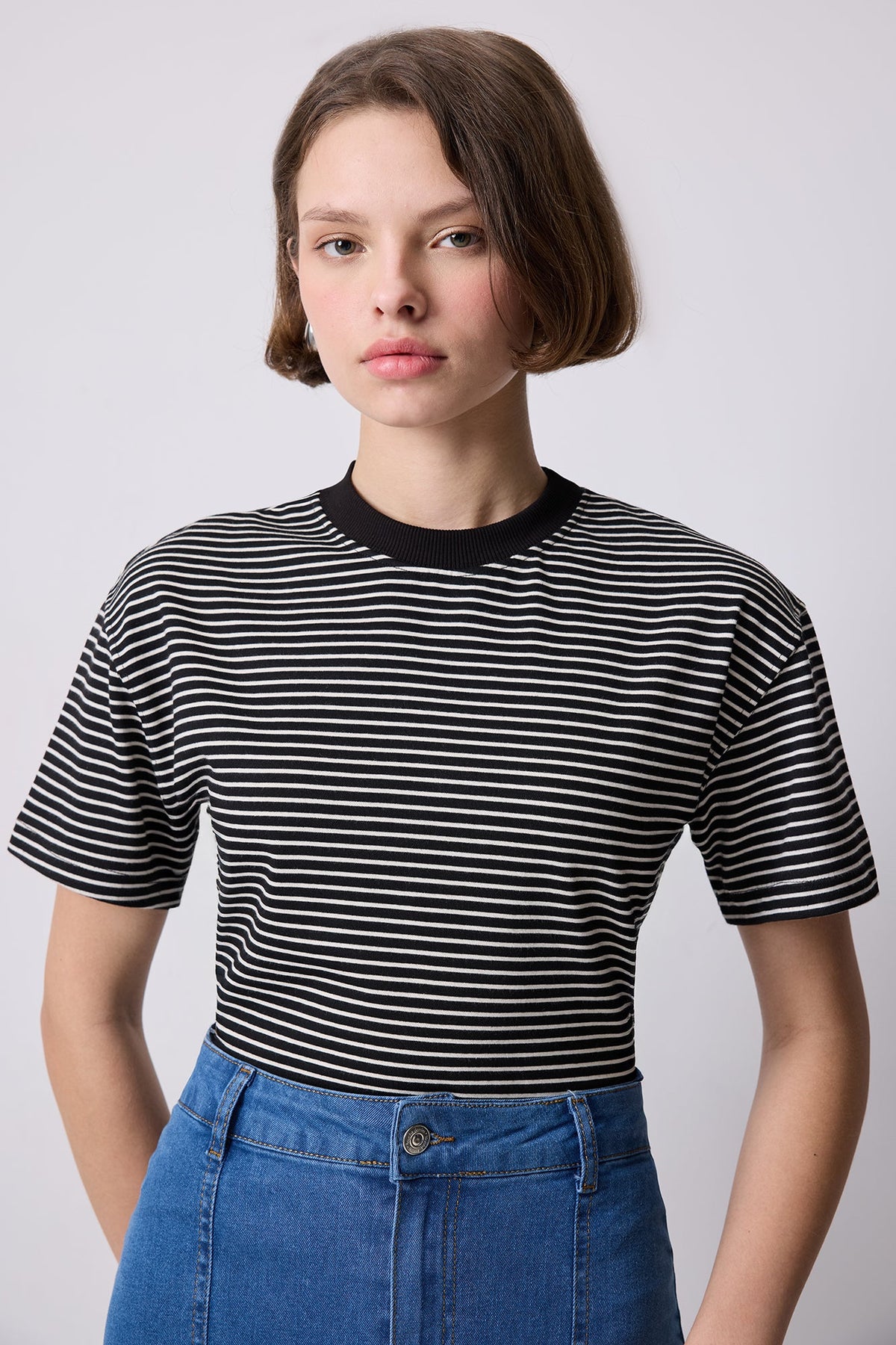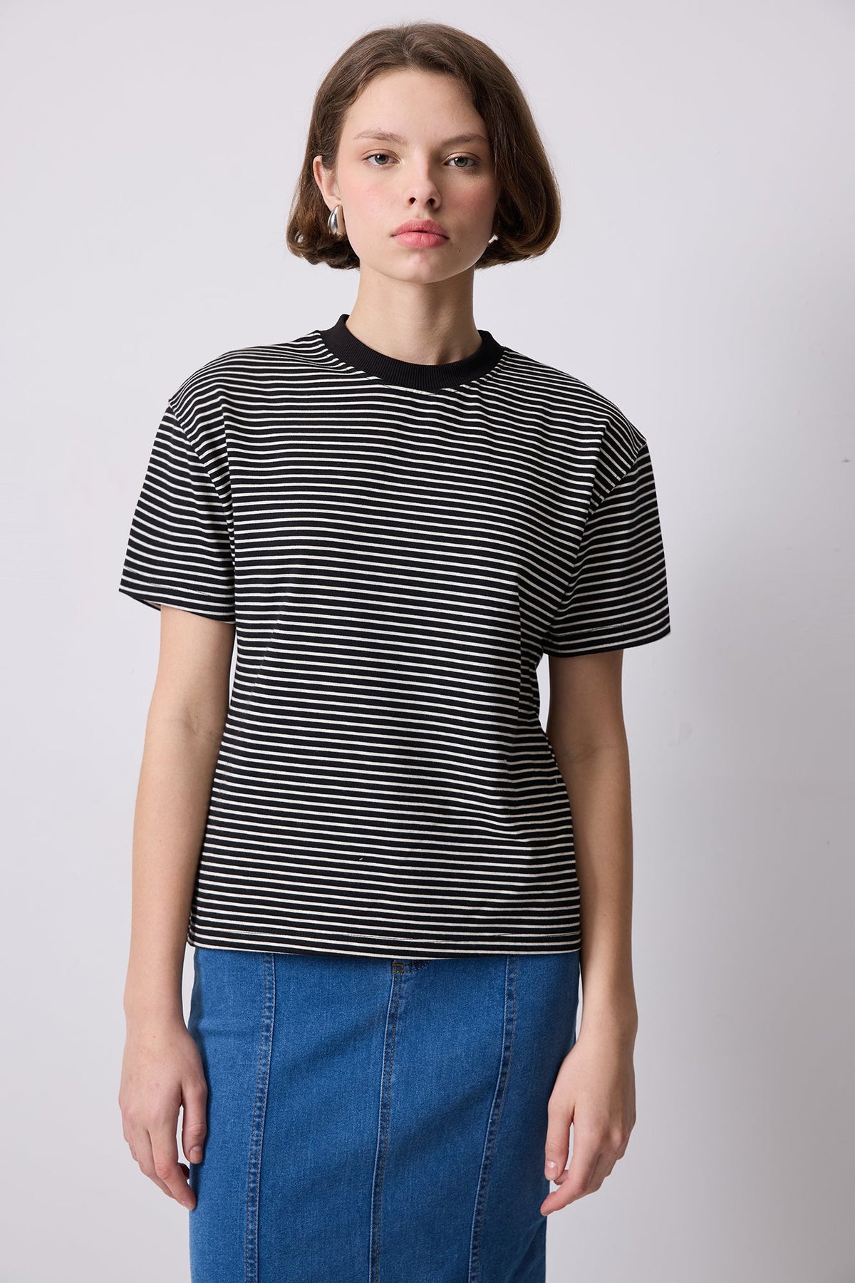 %100 PAMUKLU ÇİZGİLİ KISA KOLLU T-SHIRT