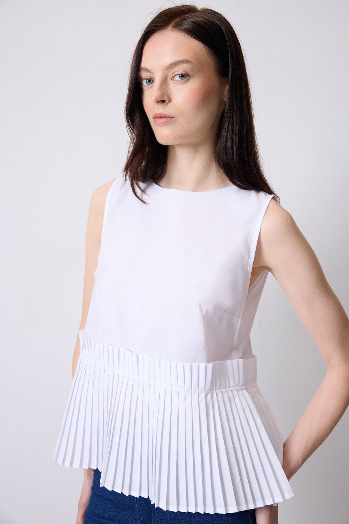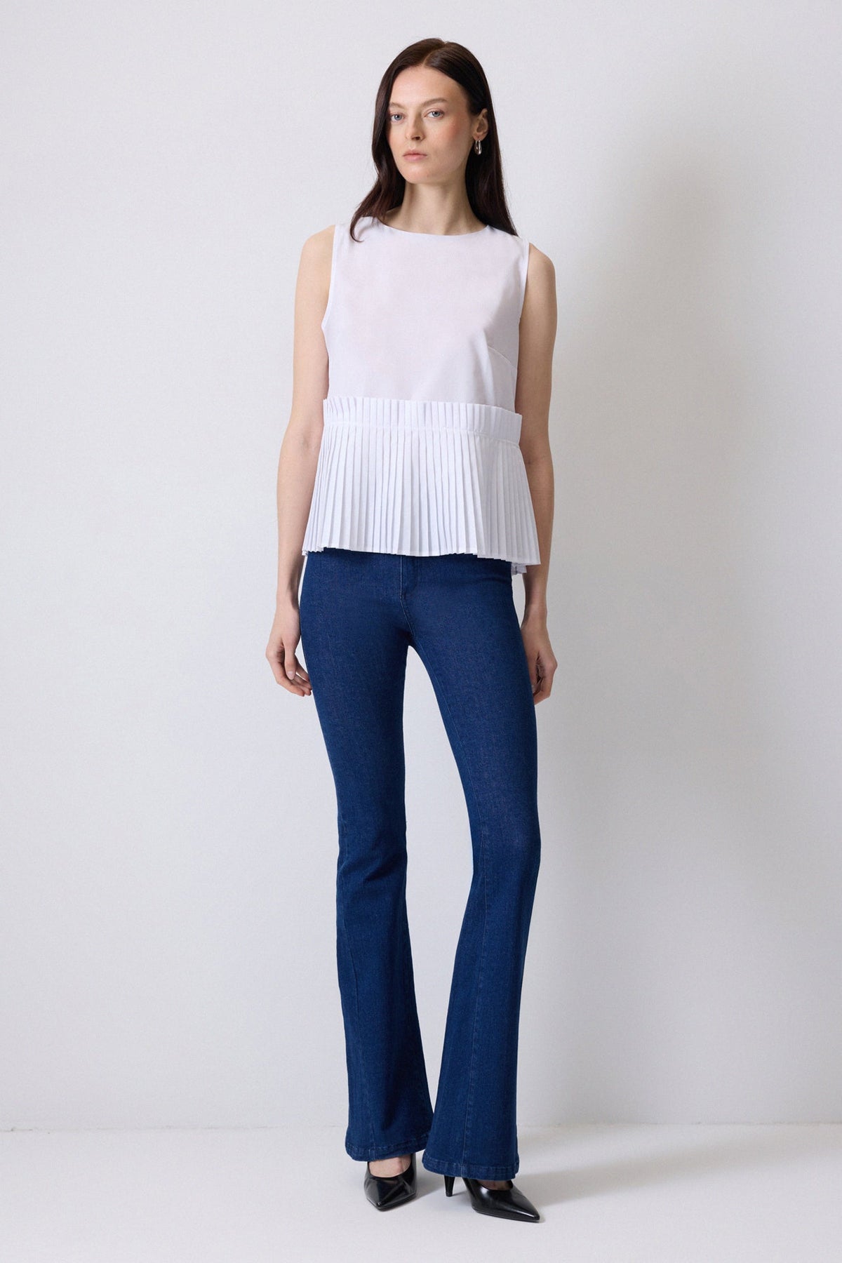 %100 PAMUKLU ETEK UCU PİLİSELİ BLUZ