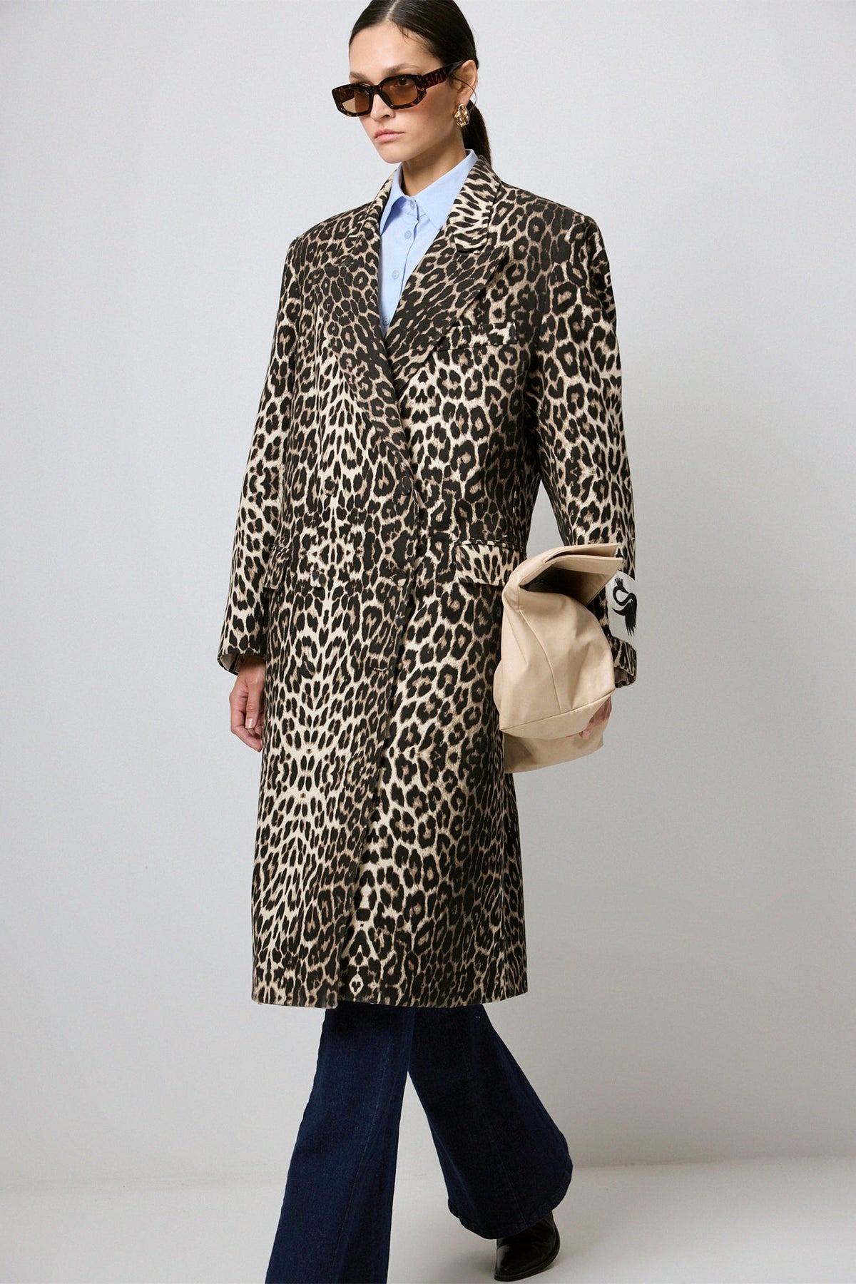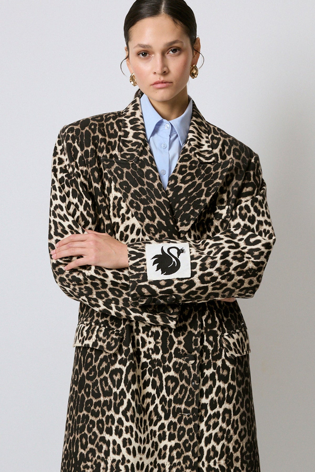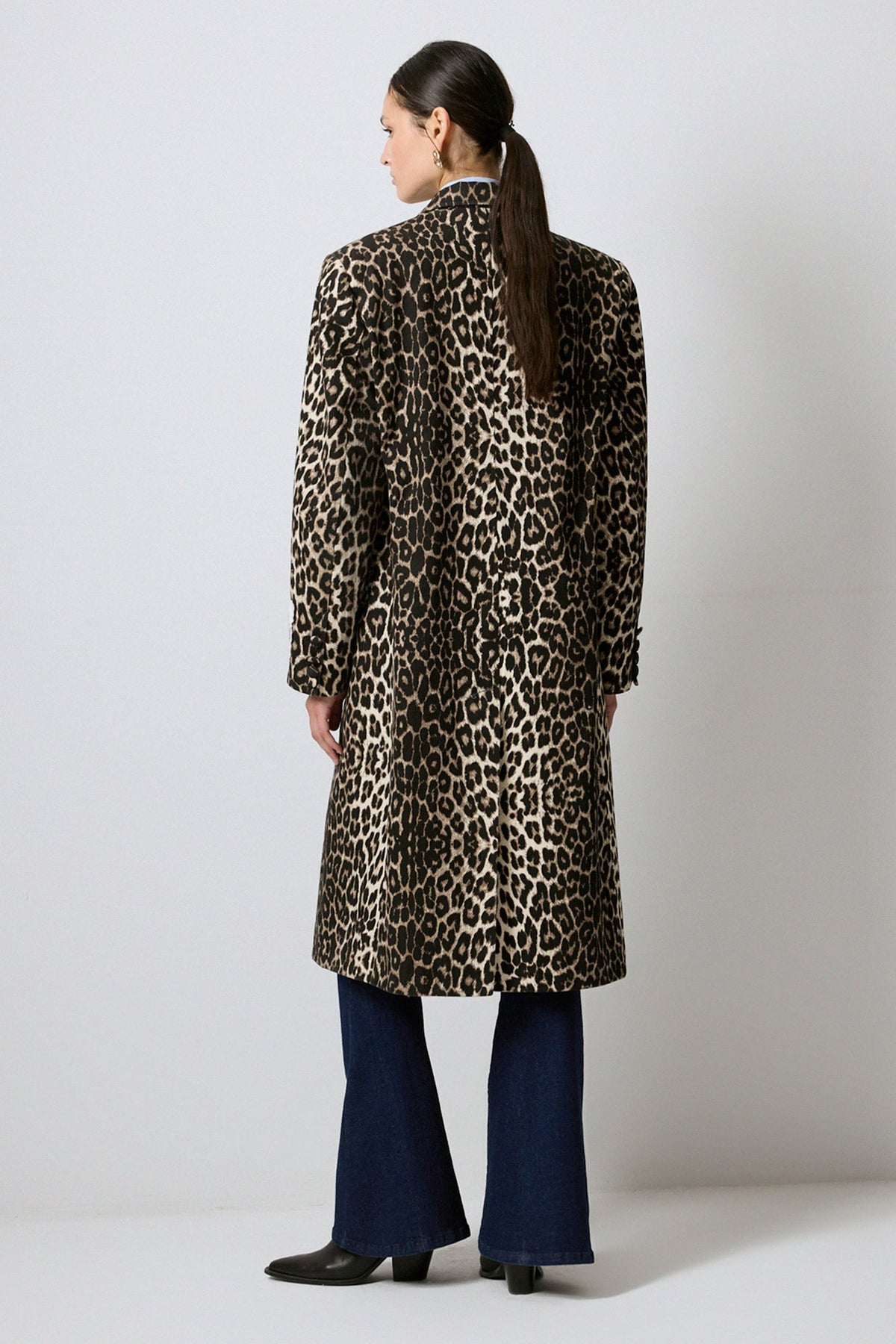 %100 PAMUKLU LEOPAR DESENLİ UZUN CEKET