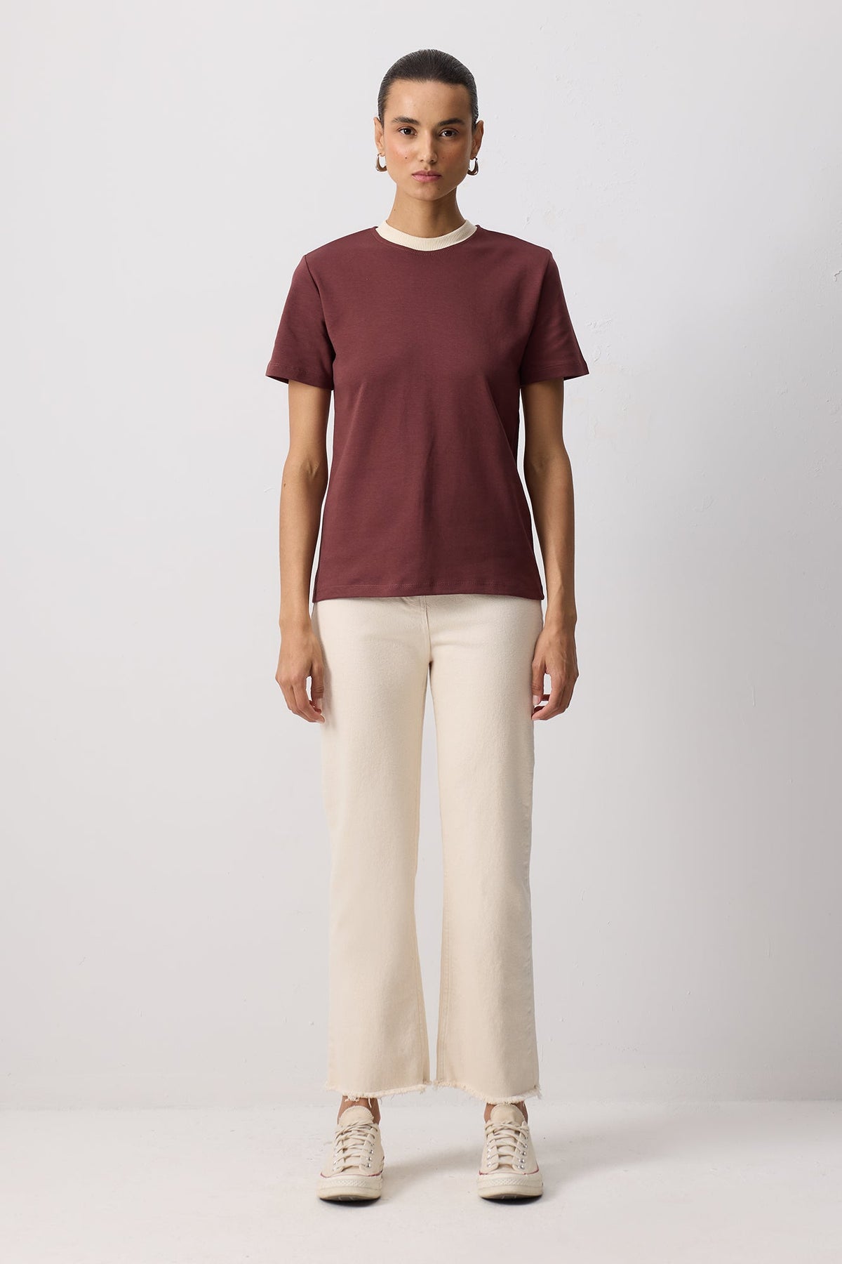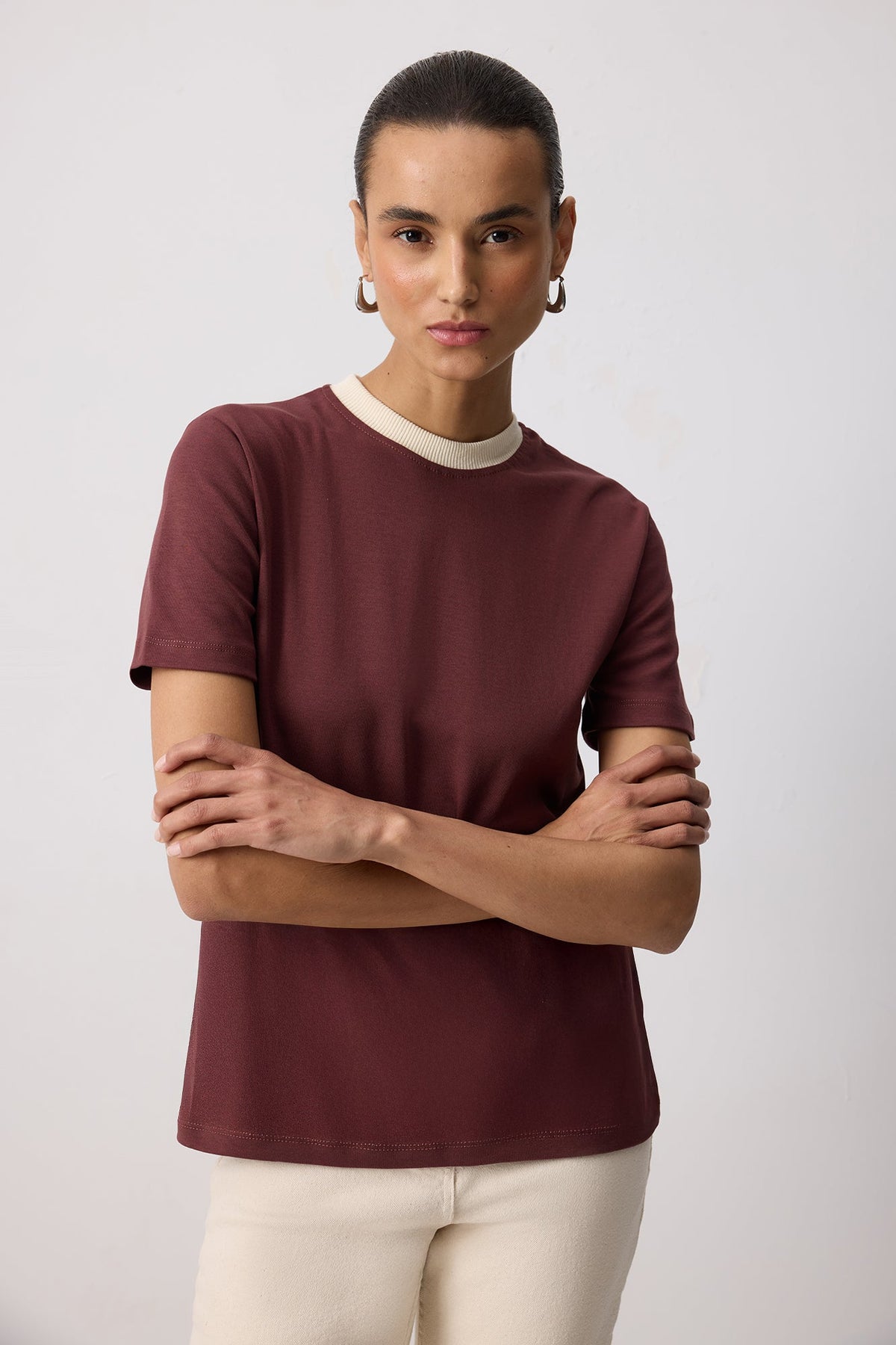 %100 PAMUKLU RİBANA YAKA KISA KOLLU T-SHIRT